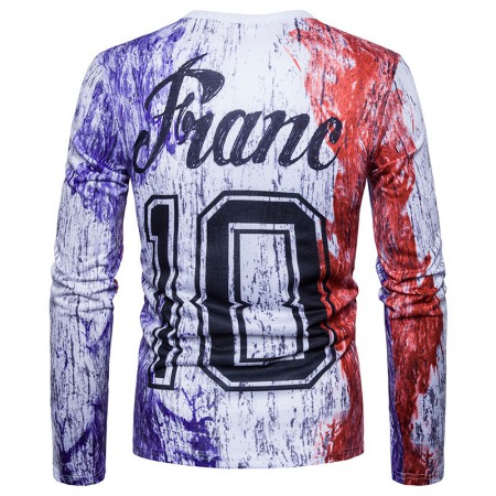 Fashion Men's Casual Personality Splash Ink Letter Printing Long-Sleeved T-Shirt
