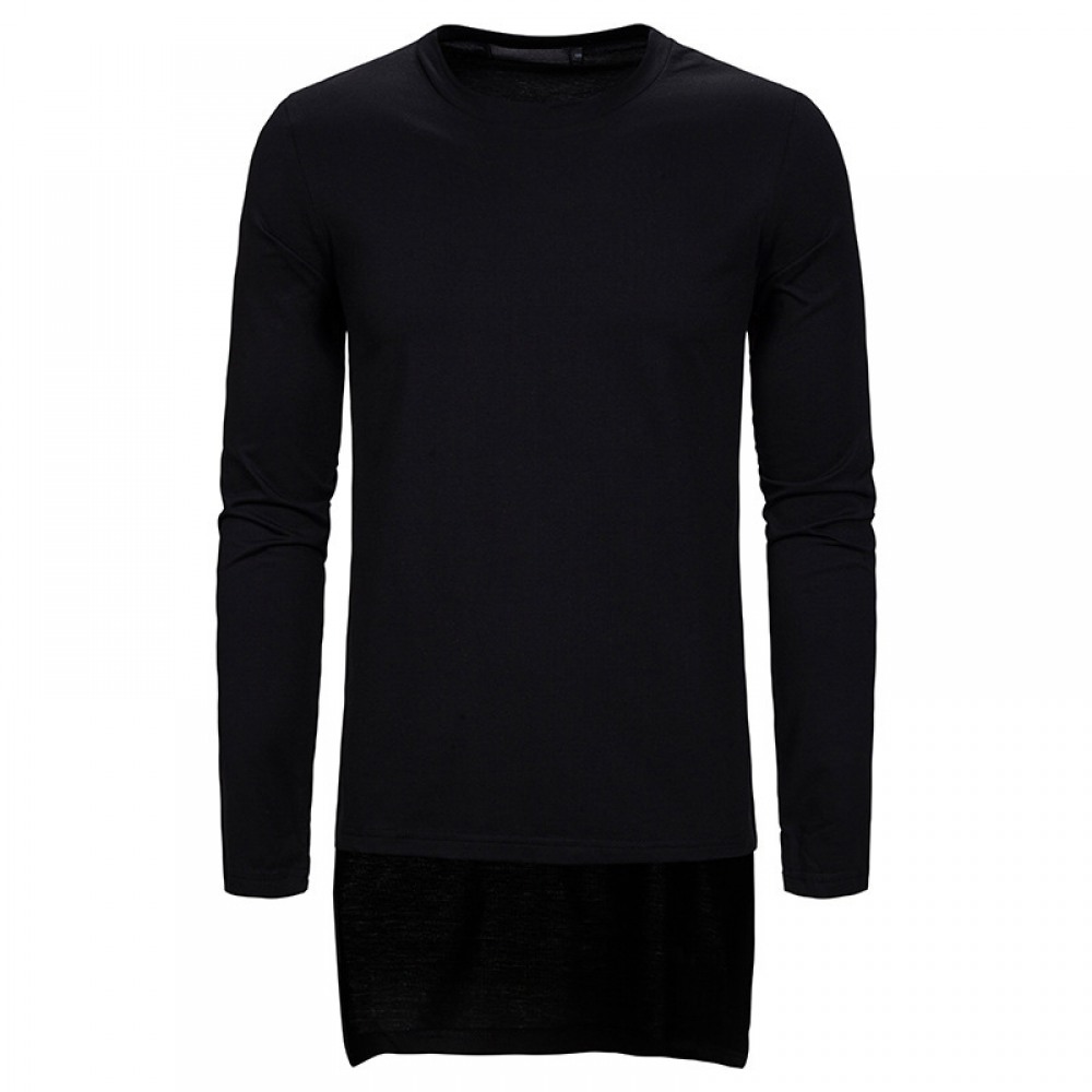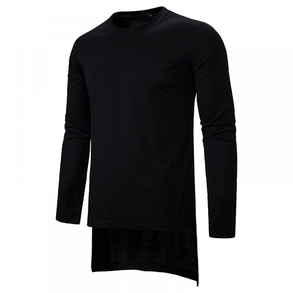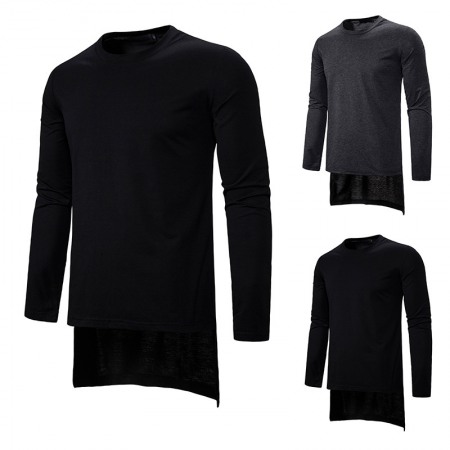 Round Neck Long T-Shirt Men's Loose Dark Trend Irregular Hem Men's Long-Sleeved T-Shirt